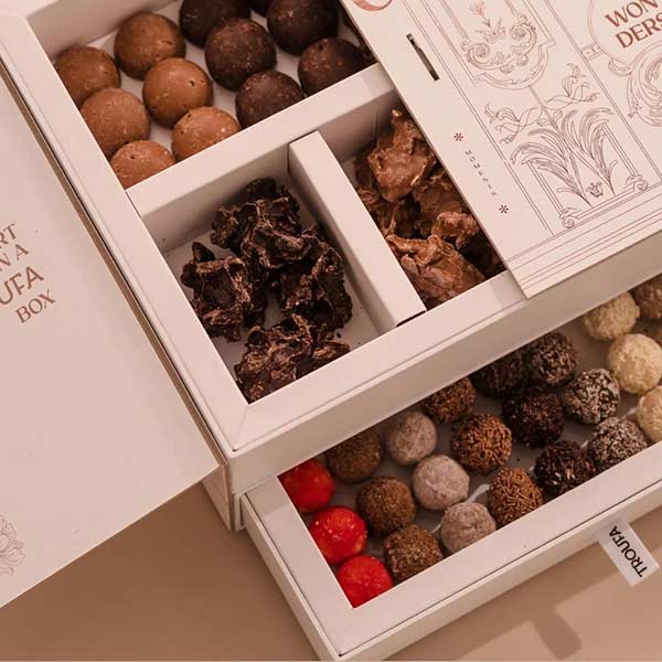 • ช็อกโกแลตสด (Nama Chocolate): แนะนำ กล่องฝาเสียบก้นขัด หรือ กล่องลิ้นชัก เพราะเปิดง่าย ปิดแน่น และป้องกันความชื้น