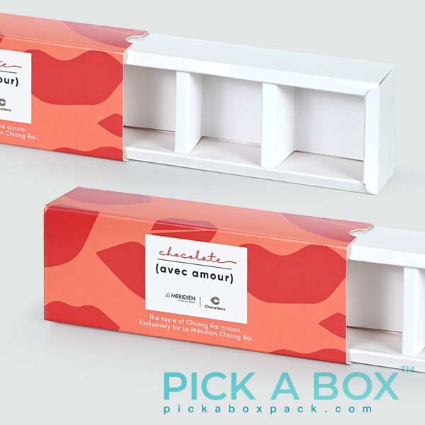 • PICK A BOX บริการฟรีออกแบบโครงสร้างกล่องใส่ช็อกโกแลต เพื่อให้กล่องพอดีกับสินค้าของแบรนด์คุณ ไม่เปลือง พื้นที่ และปกป้องสินค้าได้ดีที่สุด