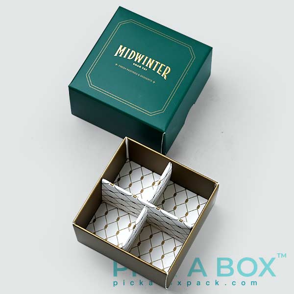 • ช็อกโกแลตบาร์/พราลีน: แนะนำ กล่องฝาครอบพร้อมไส้กั้นช่อง (Partition) เพื่อให้แต่ละชิ้นอยู่ในตำแหน่งที่แน่นอน ไม่กระทบกัน