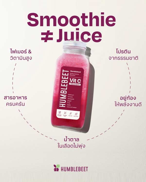 แบรนด์ HUMBLEBEET แบรนด์สมูทตี้เข้มข้นจากผักและผลไม้สดๆ ส่งตรงถึงบ้านด้วยรถห้องเย็น ก่อตั้งโดยคุณบีม ที่เล็งเห็นความสำคัญของการทานอาหารให้ครบหมวดหมู่ในไลฟ์สไตล์คนเมือง เน้นให้น้ำสมูทตี้เป็นตัวช่วยเติมเต็มสารอาหารได้อย่างครบถ้วนแบบจัดเต็มไปด้วยแร่ธาตุ วิตามิน ไฟเบอร์ เน้นการล้างสารพิษในร่างกาย สายเฮลตี้ต้องห้ามพลาด!