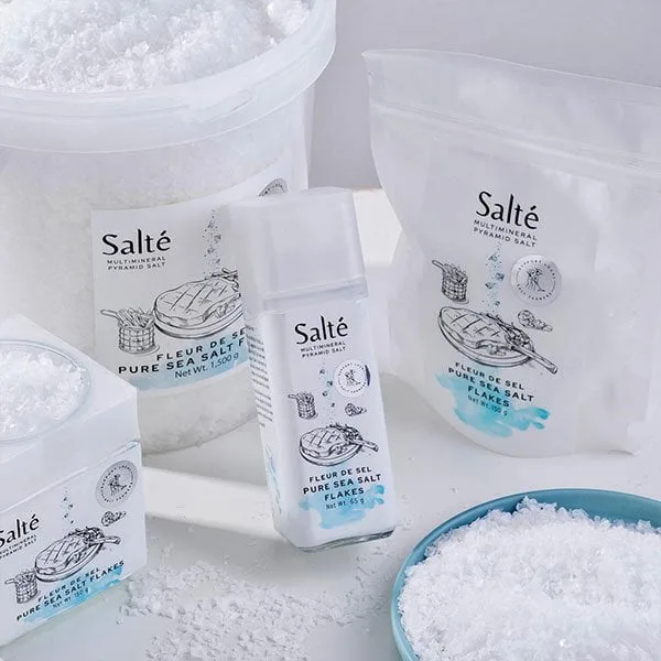 Salté ผู้เชี่ยวชาญในการวิจัยและพัฒนาเกลือ จากความรู้สึกอยากพัฒนาเกลือสมุทรของเกษตรกรชาวนาเกลือหี้มูลค่าและคุณภาพเทียบเท่ากับกับเกลือนำเข้าจากต่างประเทศ ใช้เวลานานกว่าสามปีในการวิจัยและพัฒนากระบวนการผลิตที่พิถีพิถันจนกลายเป็นดอกเกลือทะเล รูปทรงพรีระมิด ผิวสัมผัสบางกรอบ รสชาติเค็มกลมกล่อม บริสุทธิ์ สะอาด จากธรรมชาติ 100% ผ่านการรับรองมาตราฐาน HACCP, GHP, HALAL และ FDA กลายเป็นเครื่องปรุงรสของเชฟชื่อดังที่หลายท่านเลือกใช้