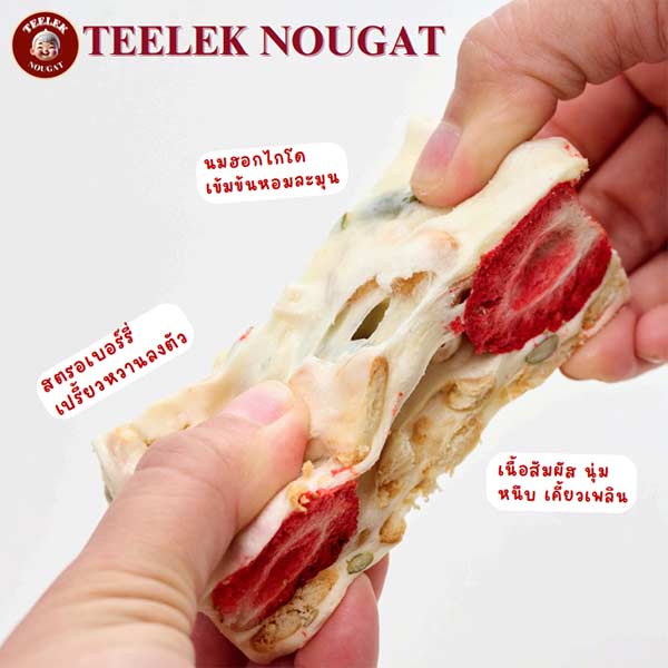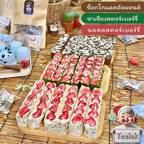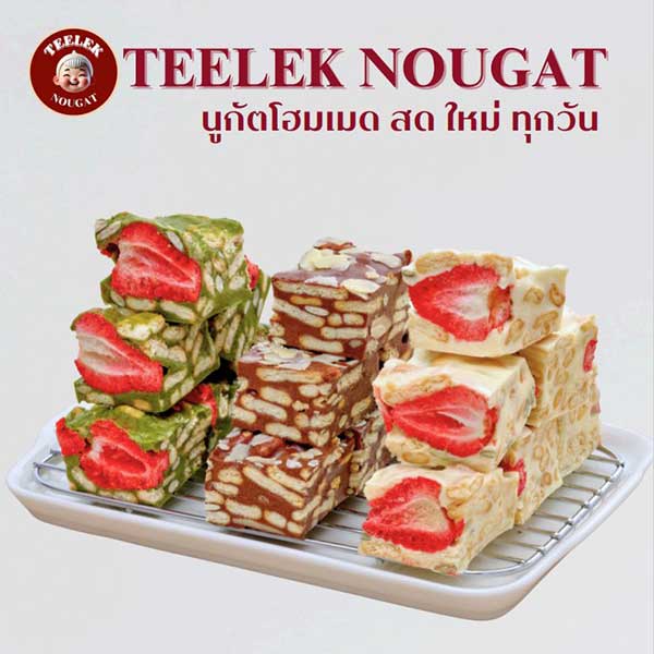 แบรนด์ Teelek Nougat (ตี๋เล็กนูกัต) เนื้อขนมมีความ หนึบ นุ่ม และกลมกล่อม ส่วนผสมที่ประกอบด้วย มาสเมโล่น้ำตาล0% ความหวานที่ได้จากธรรรมชาติจาก ธัญพืช ผลไม้ฟรีซดราย ขนมบิสกิตต่างๆ เป็นสูตรหวานน้อย / ไม่เติมน้ำตาลเพิ่ม เหมาะกับคนที่อยากลดหวาน ชอบทานหวาน แต่ยังได้รสสัมผัสแบบเต็ม ๆ มีหลากหลายรสชาติให้เลือก เช่น นมฮอกไกโด, ชาเขียวมัทฉะ, ช็อกโกแลตอัลมอนด์ ฯลฯ